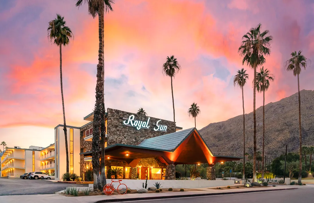 Das 4-Sterne-Hotel Royal Sun Palm Springs liegt in einer Entfernung von 5 Gehminuten von der BUZZ Trolley Route und bietet WLAN im ganzen Gebäude und Parkplätze. Das Hotel mit 66 Zimmern liegt 3 km weit weg vom Palm Springs Convention Center, einem beliebten Ort zum Einkaufen.